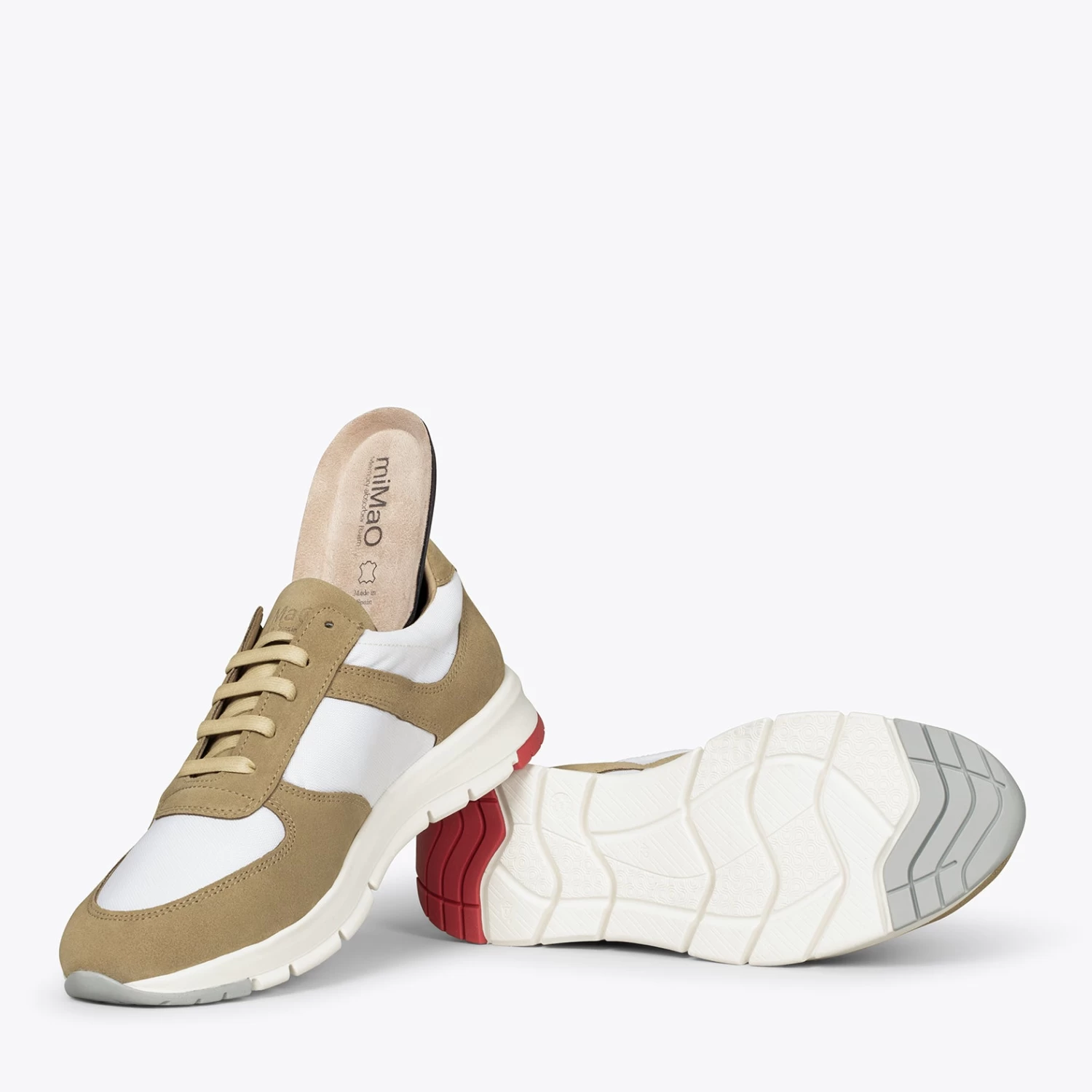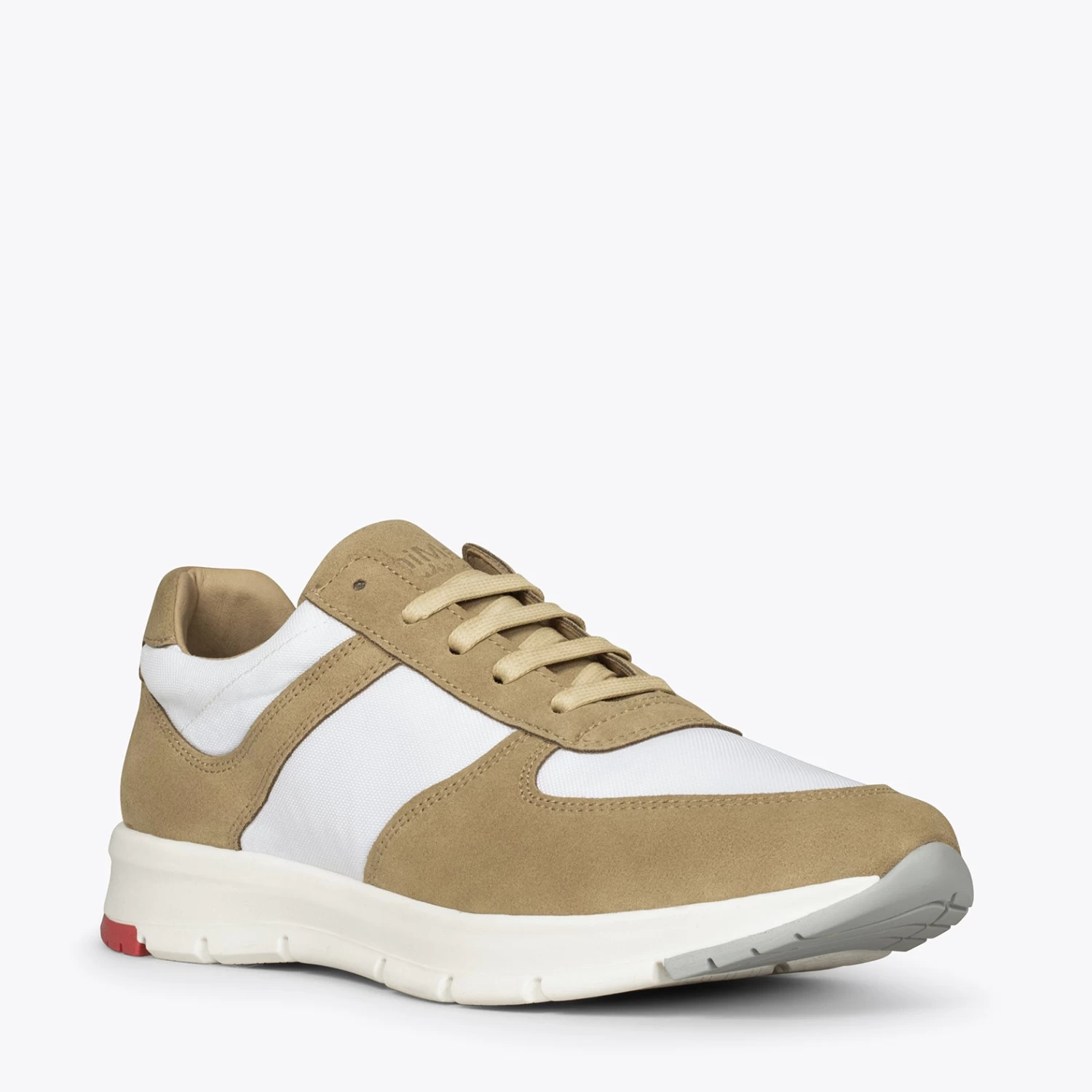 Matériau extérieur de la basket: nubuck BEIGE et textile en maille respirante BLANC