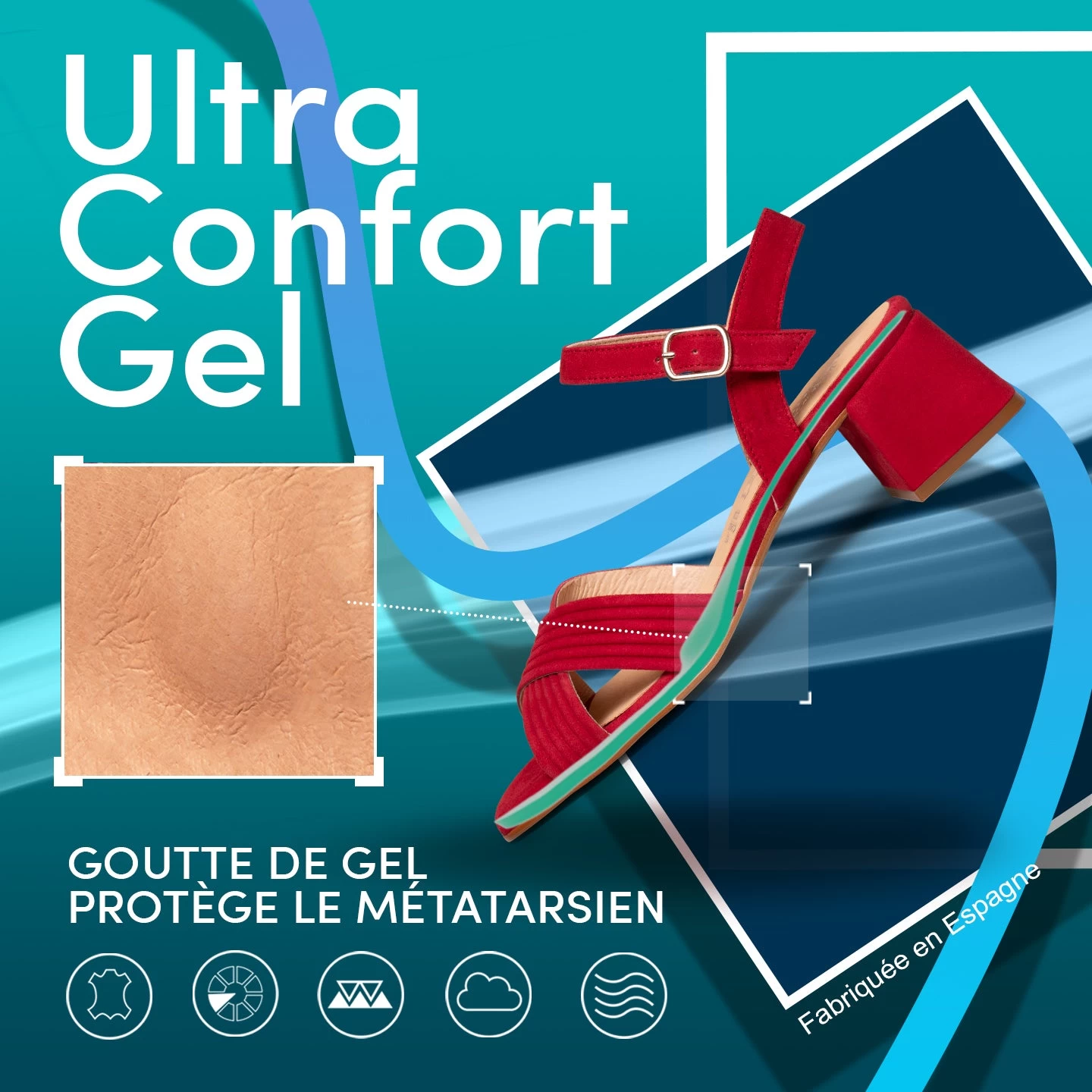 Technologie de confort: semelle intérieure en cuir Goutte Ultra Confort Gel