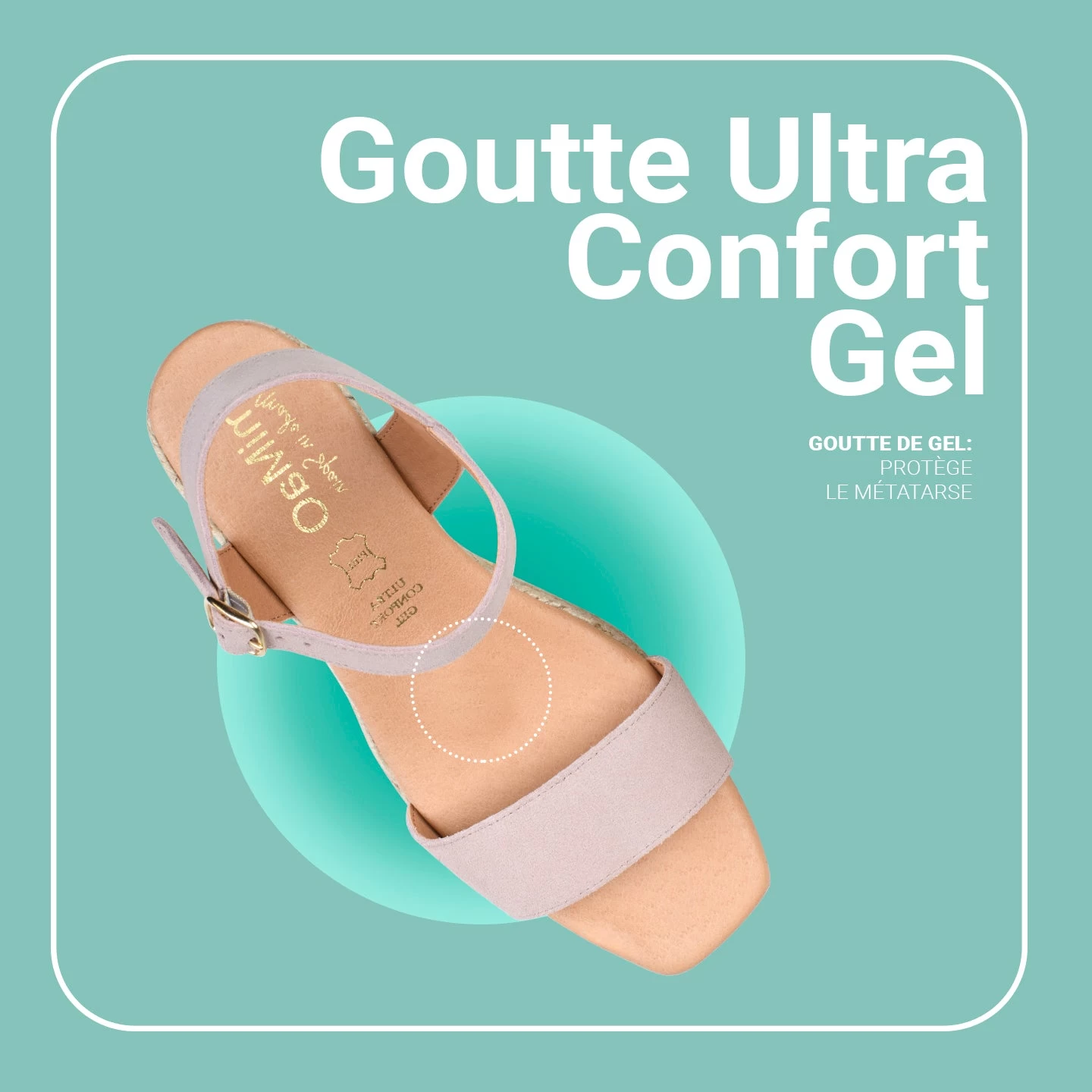 Technologie du Confort: semelle en Cuir Ultra Confort Gel transpirable avec Goutte