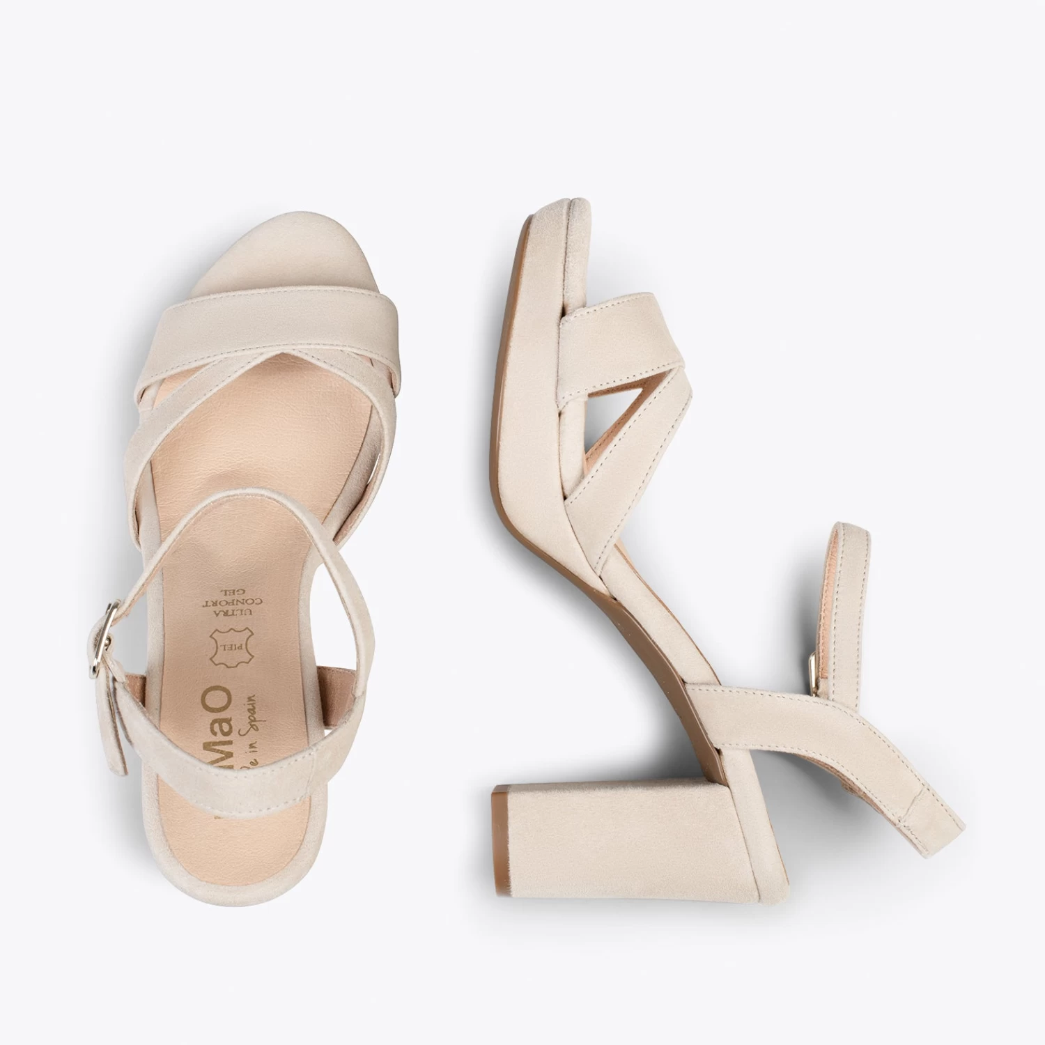 Le talon mesure 8 cm et il est très large, offrant ainsi une très bonne stabilité. Grâce à la plateforme, la hauteur du talon est compensée et le pied n’est pas trop incliné, ce qui augmente le confort. Semelle antidérapante et personnalisée miMaO.